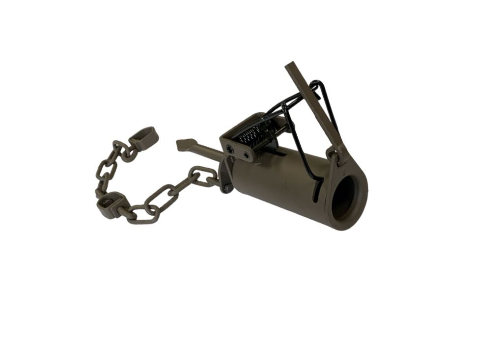 Le raton laveur est piégé aussi sur son continent d’origine : l’Amérique du Nord. Les américains ont donc conçu et développé des pièges simples et efficaces. Le plus connu est le piège couvre patte Duke. Il a une forme de tube métallique dans lequel on vient placer un appât. En voulant prendre l’appât, le raton laveur déclenche le piège et se fait coincer la patte. C’est un piège homologué et utilisé depuis de nombreuses années aux États Unis et au Canada. Son faible diamètre permet de faire une sélection et de ne pas prendre n’importe quel animal. Il permet aussi de limiter les blessures par automutilation.