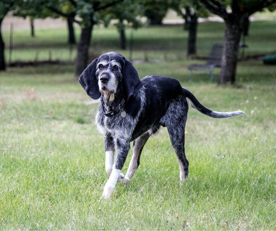 Le grand bleu de Gascogne, qui servait initialement à la chasse au loup, mais qui a pour principale vocation la chasse au sanglier.